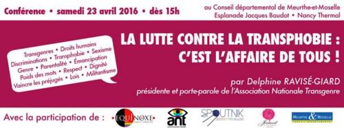 Les associations du Centre LGBT de Lorraine-Sud vous invitent à une grande conférence consacrée à la lutte contre la transphobie.