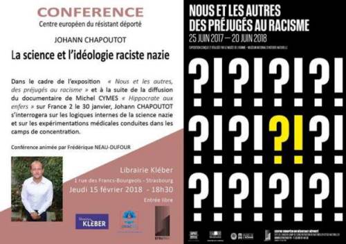 Dans le cadre de l’exposition Nous et les autres, des préjugés au racisme et à la suite de la diffusion du documentaire de Michel CYMES Hippocrate aux enfers le 30 janvier sur France 2, Johann Chapoutot s’interrogera sur les logiques internes de la science nazie et sur les expérimentations médicales conduites dans les camps de concentration.