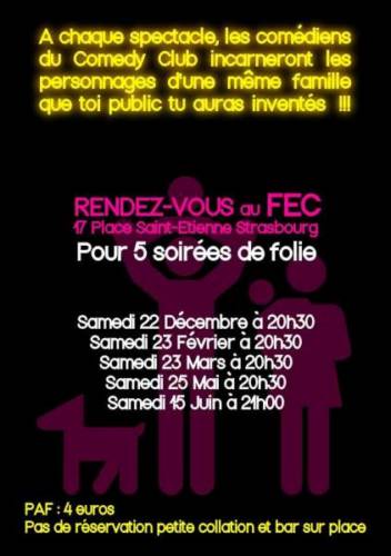 Au cours d’une seule et unique improvisation au cours de la soirée, c’est toi public qui créera les personnages que les comédiens devront incarner et décidera des aventures que cette famille devra traverser !