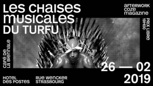 C’est pour cette bonne et simple raison que nous vous invitons à participer aux premières chaises musicales du turfu. Un événement hors des sentiers battus qui ne vous laissera pas indemnes et qui se tiendra le mardi 26 février de 19h à 21h30, au Café de la Biennale à Strasbourg.