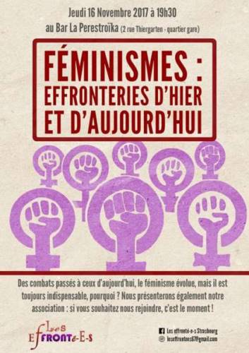 Le jeudi 16 novembre les effronté-e-s vous invitent à une réunion publique sur le thème des mouvements féministes.