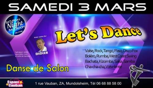 Réservez-vous le Samedi 3 MARS 2018 dès 21h00 pour une fabuleuse soirée Danse de Salon avec Didier.