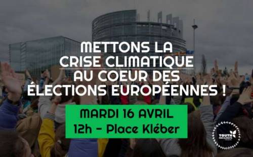 Face aux urgences climatiques et environnementales, Youth for Climate Strasbourg (collectif de lycéen·ne·s et étudiant·e·s) convie à 12h le 16 avril toutes les personnes qui le peuvent à cette manifestation qui partira à 13h Place Kléber et arrivera à 15h devant le Parlement Européen où nous avons donné rendez-vous aux parlementaires pour une allocution solennelle destinée aux candidat·e·s aux élections européennes pour qu’iels s’engagent sans délais à prendre les mesures à la hauteur des enjeux climatiques et environnementaux. Cette manifestation, en coopération avec les mouvements Youth for Climate et Fridays for Futur européens, aura une portée internationale quelques jours à peine après l’envoi aux candidat·e·s d’une Déclaration d’Urgence Climatique déjà signée par plusieurs d’entre elleux. L’objectif étant de faire de la crise climatique le cœur de ces élections et de faire pression pour que les candidat·e·s s’engagent en signant la Déclaration.
