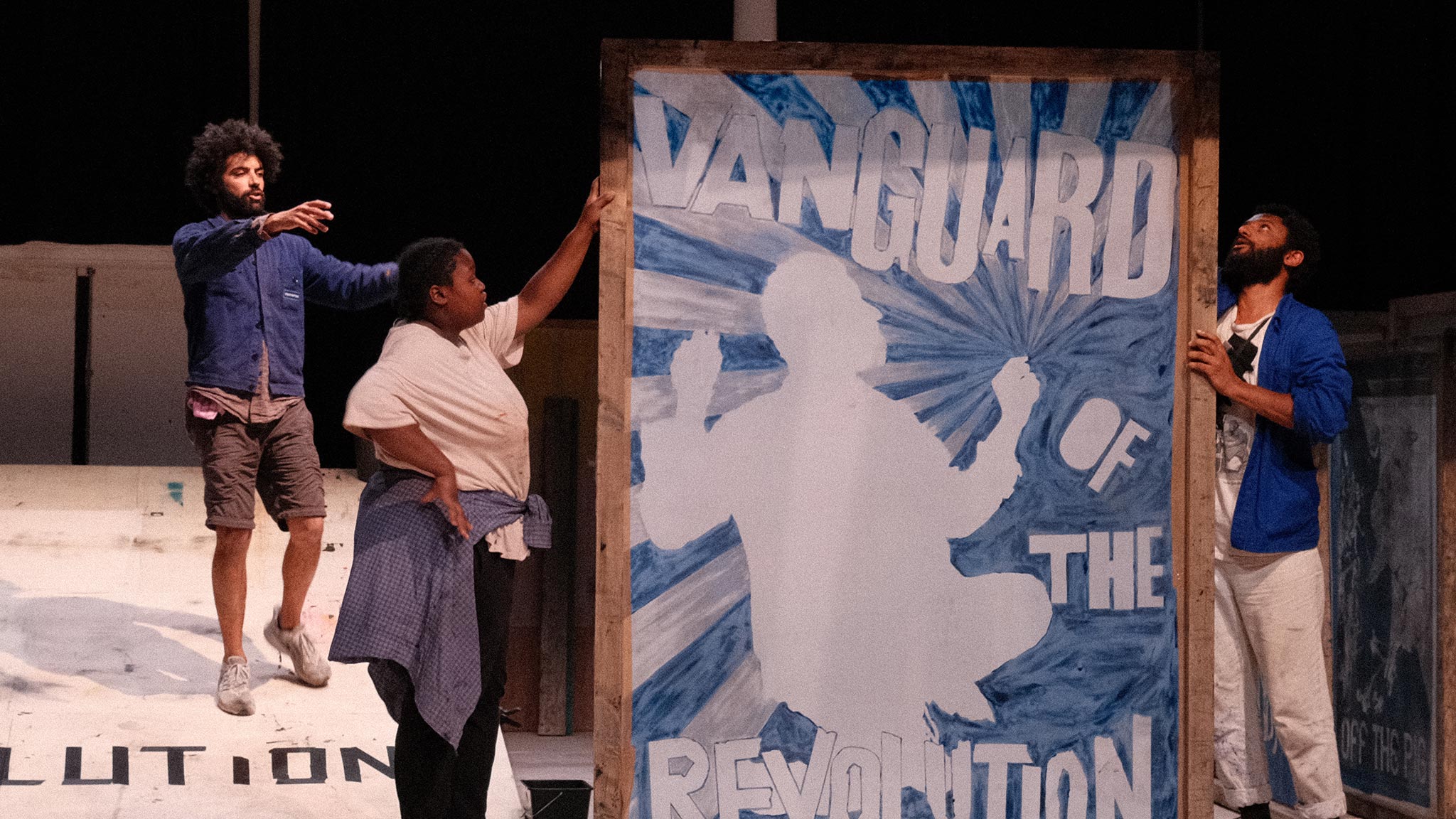 Move on over or we’ll move on over you révèle la puissance esthétique, poétique et créative de cette révolte historique : chorégraphies, dessins, photographies, graffs, poèmes, codes vestimentaires etc. Porté par trois acteurs généreux, ce spectacle est à la croisée de la fiction documentaire et du théâtre d’objets. La scène se transforme en atelier de sérigraphie dans lequel un groupe de militants fabrique ses slogans et affiches. Quelle part d’émotion nous traverse quand on entre en résistance ? Comment la poésie et le symbole peuvent-ils renverser les rapports de forces ? À méditer.