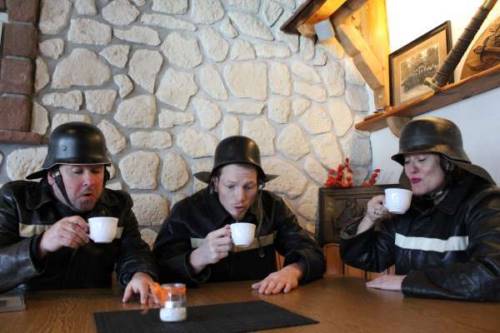 La pause-café tant attendue est constamment interrompue par la sonnerie du téléphone. Vite, vite, les pompiers se remettent en route...