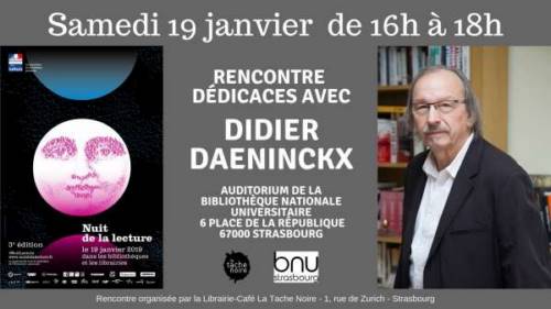 La rencontre aura lieu de 16h à 17h dans l’auditorium de la BNU. Elle sera suivie d’une vente de livres et d’une séance de dédicaces au stand de la Libraire La Tache Noire dans le Foyer Nord.