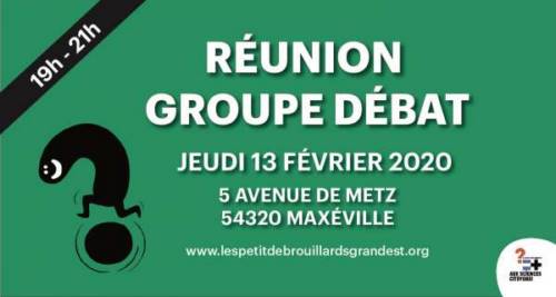 Si tu es intéressé la prochaine réunion se tiendra le jeudi 13 février 2020 à La Piscine, au 5 avenue de Metz, à Maxéville (54320) de 19h à 21h.