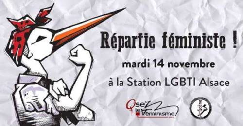 Osez le féminisme 67 vous convie à sa prochaine réunion mensuelle, mardi 14 novembre à 20h à La Station LGBTI Alsace, 7 rue des Écrivains à Strasbourg.