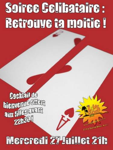 Une moitié de carte de jeu est remise aux hommes, une autre moitié est remise aux femmes. Le but du jeu: retrouver sa moitié!