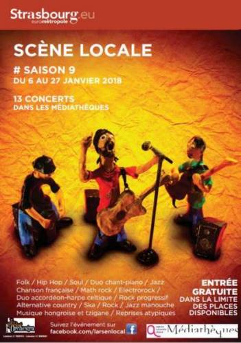 Ce concert est organisé dans le cadre du Festival de la Scène Locale organisé par Larsen Local : Zik en Alsace et Médiathèques de Strasbourg Eurométropole, du 6 au 27 janvier 2018. Les concerts auront lieu dans différentes médiathèques de l’Eurométropole de Strasbourg ; ils sont gratuits, ouverts à tous dans la limite des places disponibles.