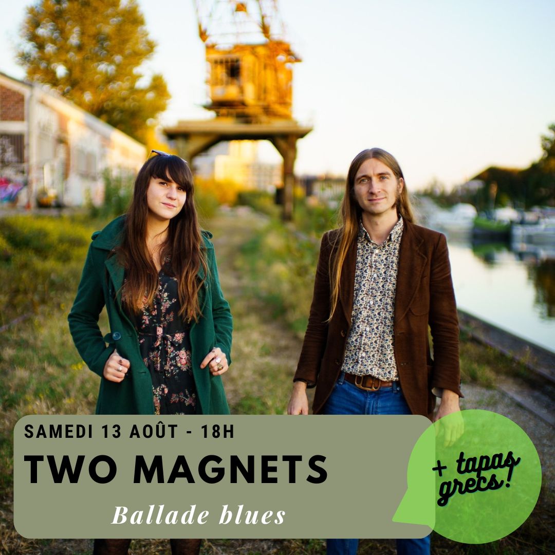 Venez à pied ou à vélo au concert des Two Magnets, samedi 13 aout à 18h au Ravito des cyclos ! Au programme, des ballades blues acoustique, venez découvrir ! En accompagnement, tapas grecs et buvette bio locale.