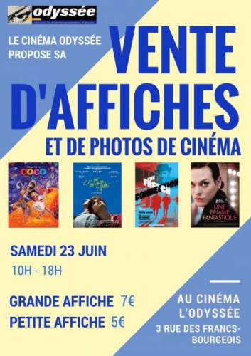 Le Cinéma Odyssée organise sa vente d’affiches et de photos de cinéma le samedi 23 juin de 10h à 18h. Elle se déroulera devant le cinéma (le stand se situera à l’étage du cinéma en cas de mauvais temps).