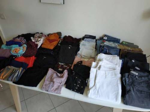 Nombreux vêtements hommes et femmes et enfants